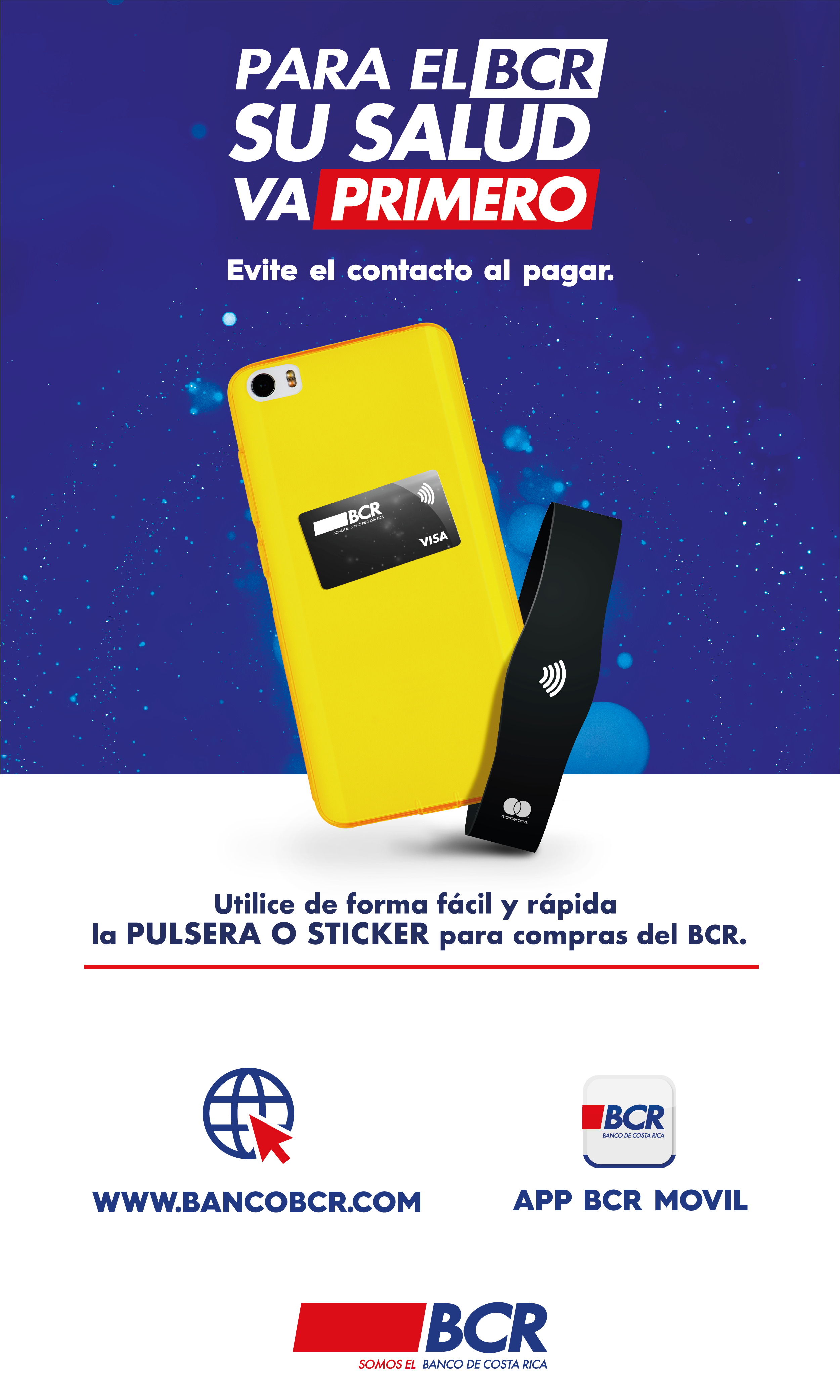 El Banco de Costa Rica (BCR) ofrece a sus clientes y público en general, dos dispositivos que, mediante la tecnología de pago sin contacto (contactless), permiten a las personas cancelar sus compras en comercios sin necesidad de entregar su medio de pago de débito o crédito.