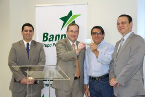 Julio Ramírez, vicegerente general de negocios y Juan Carlos Gurdian, gerente de negocios de personas de Banpro Grupo Promerica, entregaron a López Castillo, su premio de un millón setecientos cincuenta mil córdobas, en presencia de los medios de comunicación, durante una conferencia de prensa efectuada en el Centro Corporativo Banpro.