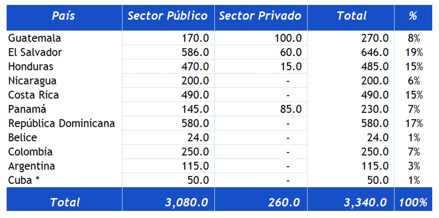 *Cifras preliminares en millones de dólares al cierre de noviembre de 2022. * Las aprobaciones de Cuba son directamente en Euros (46.8 millones), las cifras en dólares que se muestran en este informe son únicamente para referencia.