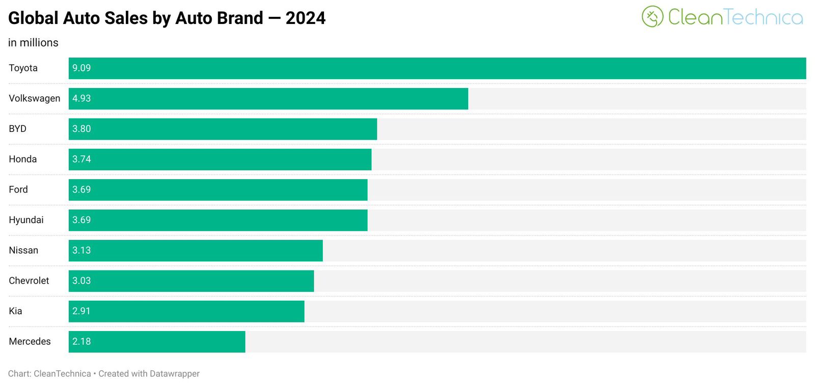 Según el reciente análisis publicado por CleanTechnica, BYD escaló seis posiciones en solo un año, pasando del puesto número 9 en 2023 al número 3 en 2024, con un crecimiento del 41,6% en ventas globales. Este ascenso refleja la confianza de los consumidores en la marca y desafía la percepción de que la adopción de vehículos eléctricos es limitada.