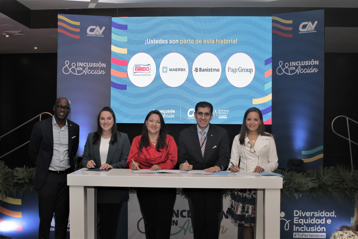 Cervecería Nacional, Grupo Bimbo, Maersk, Michael Page y Banistmo firman acuerdo para promover y gestionar la inclusión en acción, de mujeres en sus organizaciones.