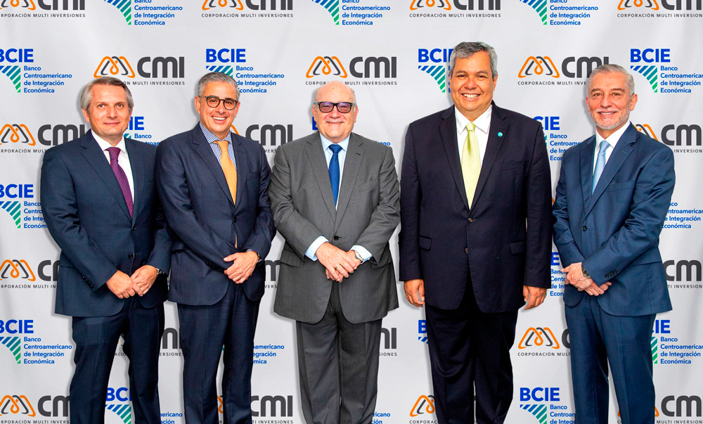 Francisco Villela, director de la Unidad de Finanzas -CMI, Carlos Gómez, gerente del Sector Privado y Público No Soberano BCIE, Juan Luis Bosch, presidente Chairman CMI Capital- CMI, Dante Mossi, presidente ejecutivo- BCIE y Enrique Crespo, CEO CMI Capital – CMI.