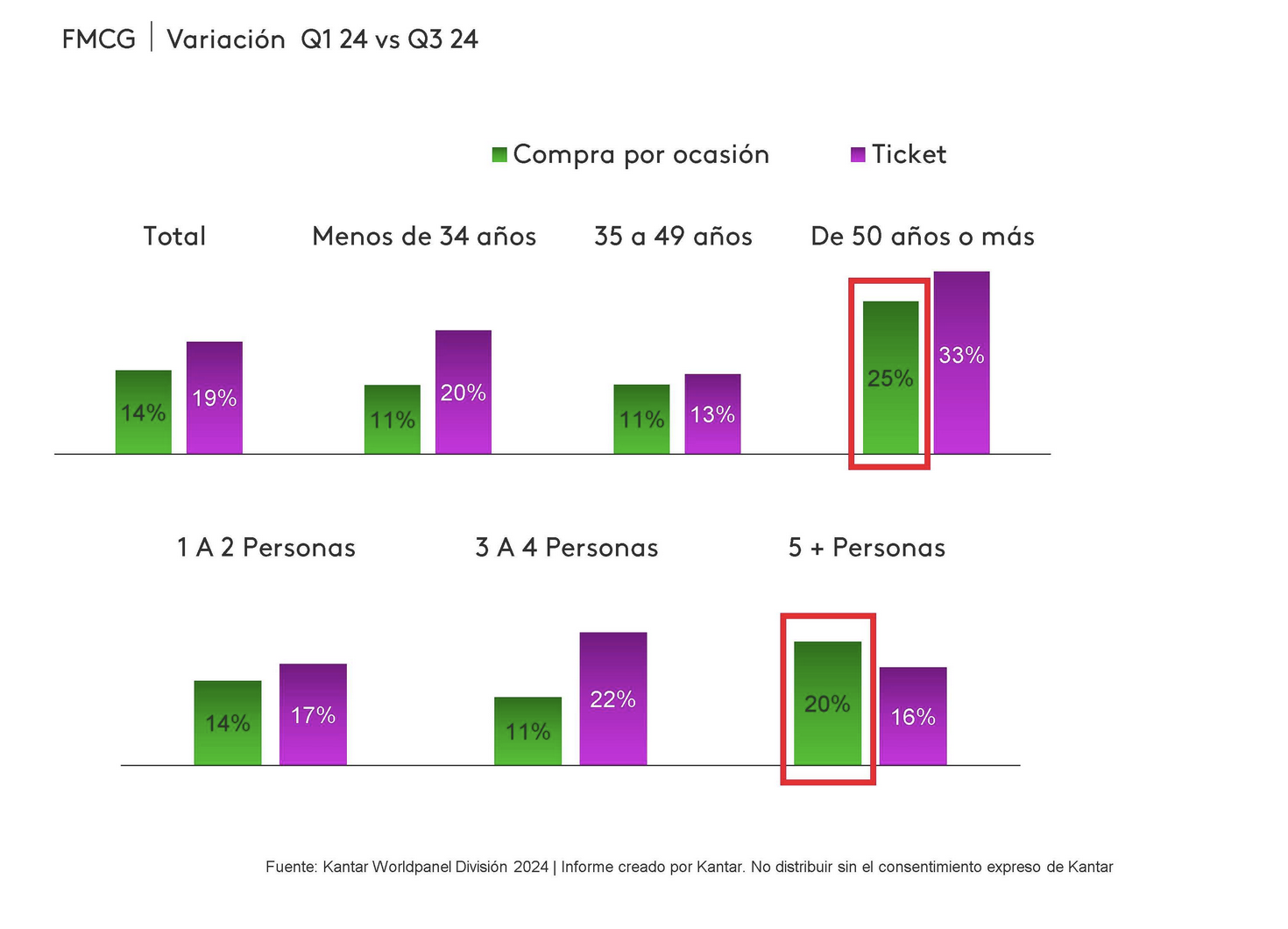 Este aumento de compra por ocasión y ticket se da en mayor medida principalmente en los shoppers mayores de 50 años y en familias grandes: