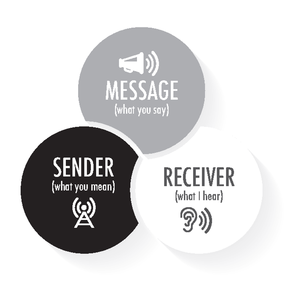 Los «anillos» representan lo que usted, el emisor de la información, quiere decir, lo que dice y lo que escucha el receptor.