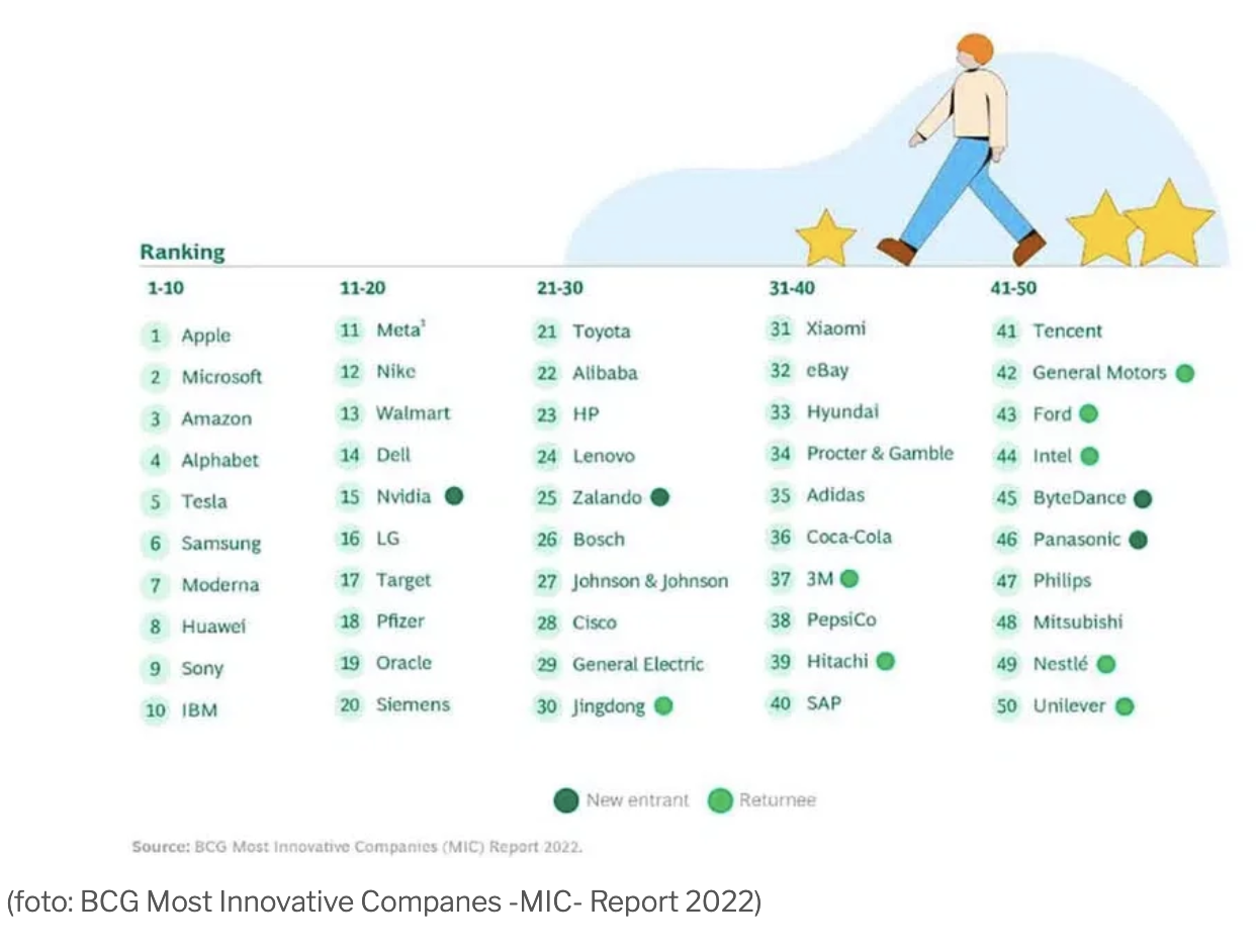 Asimismo, menciona que cuatro nuevas compañías se incorporaron al top 50: Nvidia (15), Zalando (25), ByteDance (45) y Panasonic (46).