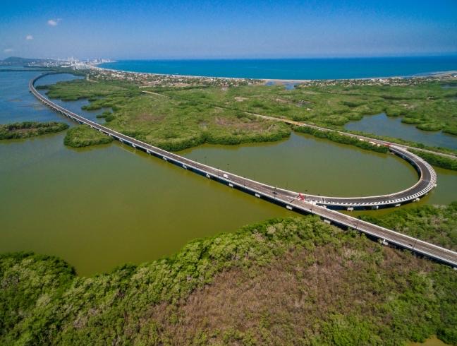 El viaducto sobre la Ciénaga de la Virgen es parte de la vía que une Cartagena con Barranquilla, una obra que agiliza los tiempos de desplazamiento entre las dos ciudades, mejora la movilidad reduciendo al menos un 50% de tiempo en el trayecto.