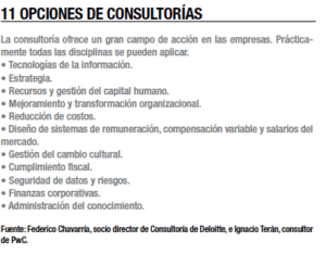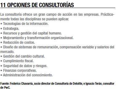 Con él coincide Ignacio Terán, consultor de la firma PwC, quien asegura que se trata de un servicio de asesoría especializada e independiente, al que recurren las empresas en diferentes industrias para encontrar soluciones a sus problemas de negocio y que se sustenta en innovación, experiencia, conocimiento, habilidades de los profesionales, métodos y herramientas.