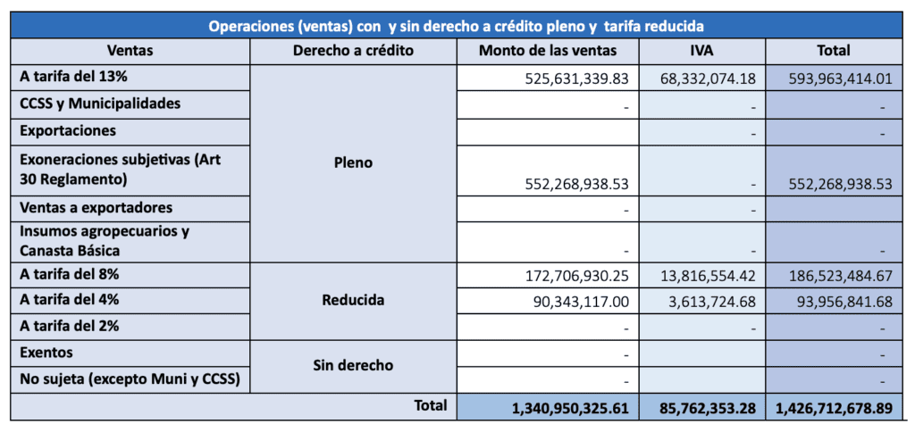 El especialista de Baker Tilly Costa Rica, comentó que todas las ventas al 13% dan derecho a crédito pleno. Pero, también hay algunas ventas que tienen tarifa reducida, que también dan derecho a crédito fiscal pleno, por lo que, aunque se venda a un 0% de IVA, por ejemplo, es incorrecto realizar la proporcionalidad.