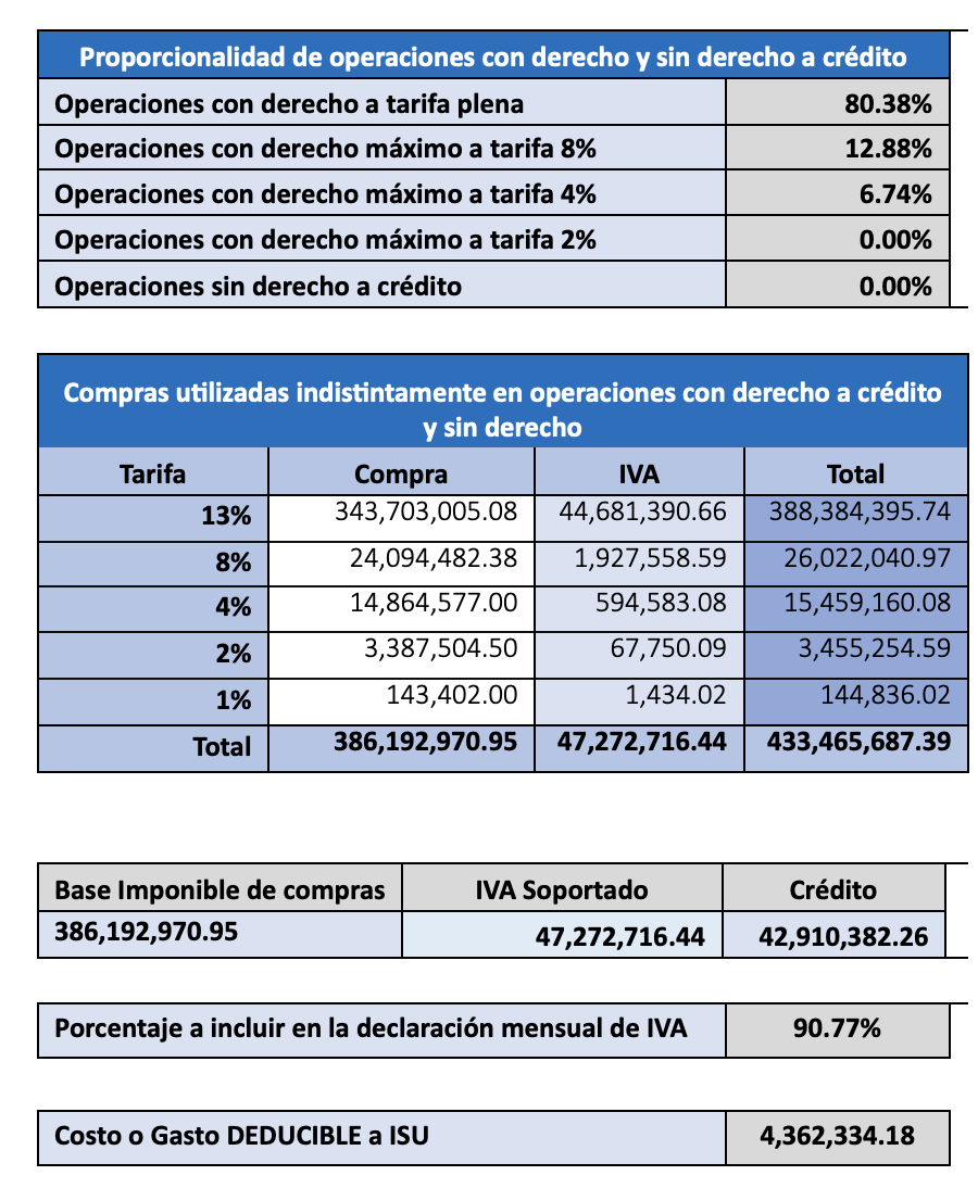 - Una vez que se tenga esos dos datos agrupados se procede con el cálculo de la proporcionalidad. Para ello, existen herramientas disponibles en el mercado y pueden apoyar esta labor.