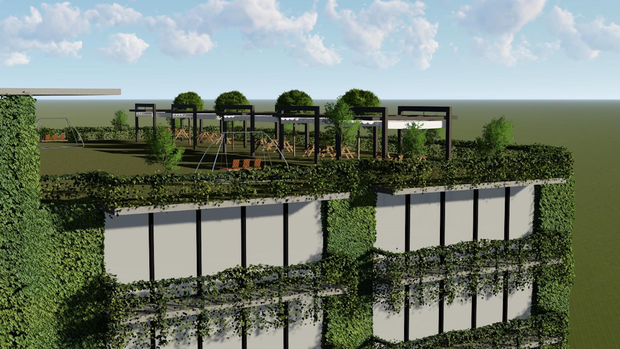 Las fachadas de los edificios estarán cubiertas por una capa de vegetación.