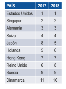 De acuerdo al Informe Global 2018 que fue lanzado  en Ginebra, Suiza, Estados Unidos en la economía más competitiva de los 140 países evaluados, seguido por Singapur y Alemania. En América Latina el liderazgo lo tiene Chile seguido de México y Uruguay.
