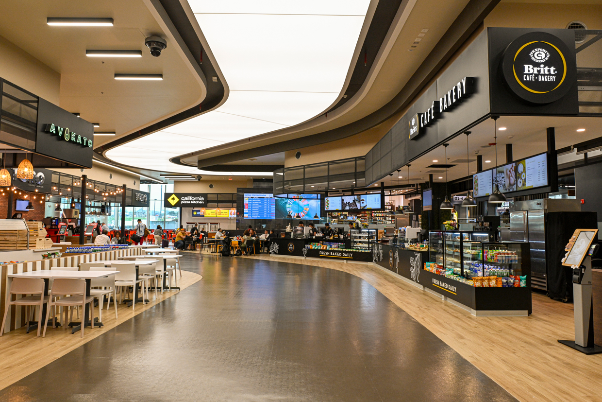 El nuevo edificio comercial cuenta con 1.350m2, y se ubica en el área de Salidas Internacionales, inmediatamente después del sector de Migración y filtros de seguridad, está dividido en dos niveles, el área inferior que posee un sector de soporte operacional y otro para los colaboradores del edificio comercial, con facilidades como cocina, casilleros para personal, salas de reuniones, servicios sanitarios y de limpieza, oficinas y sala de lactancia. Mientras que, en el área superior, se ubica la zona de comidas, que tiene la posibilidad de recibir hasta un máximo de 240 personas cómodamente sentadas.