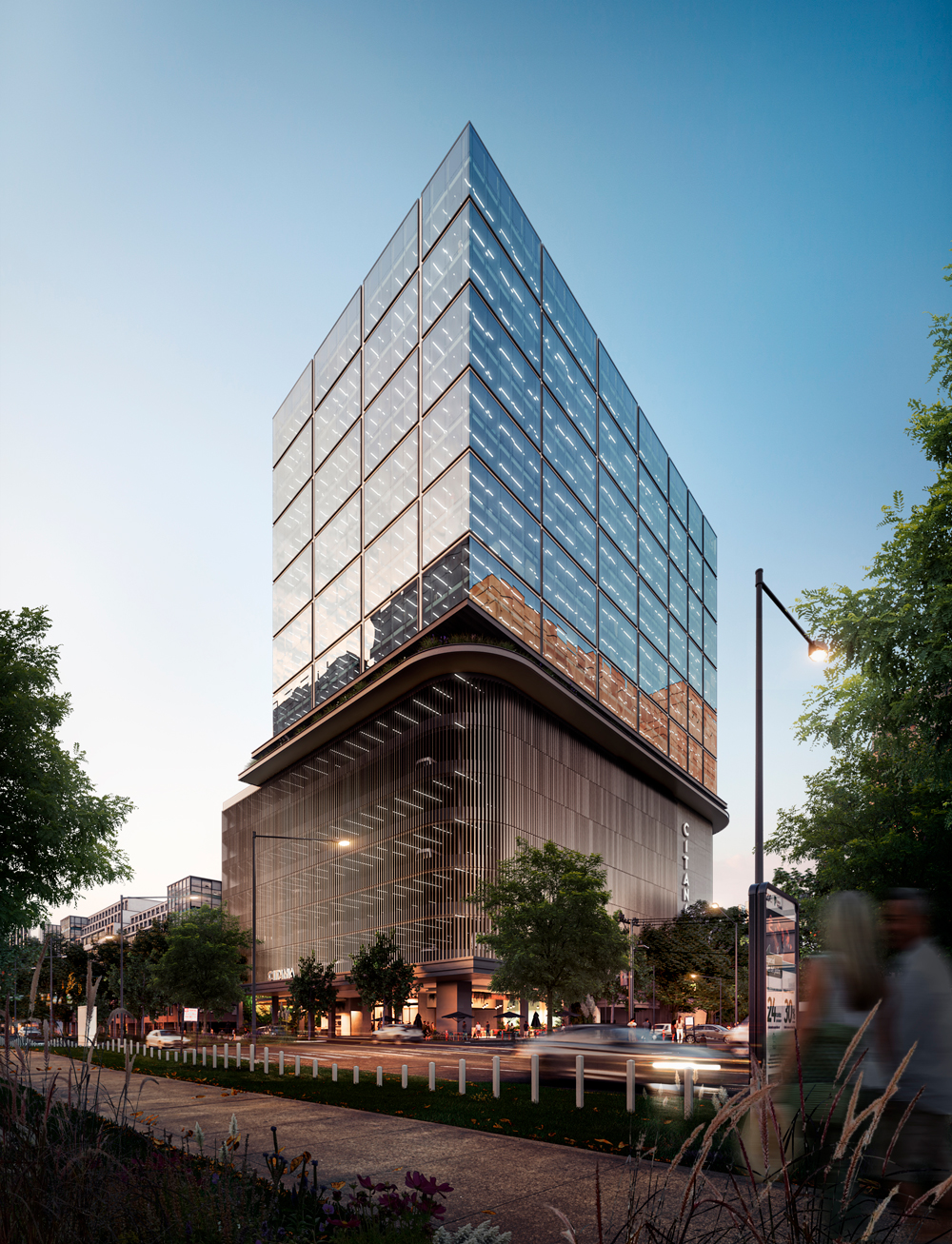 CITANA tendrá 20 niveles y tres sótanos, para un total de 60.000 m2 de construcción, incluidos 20.000 m2 para área de oficinas y 1.500 m2 de área comercial, con restaurantes en el primer y noveno nivel.