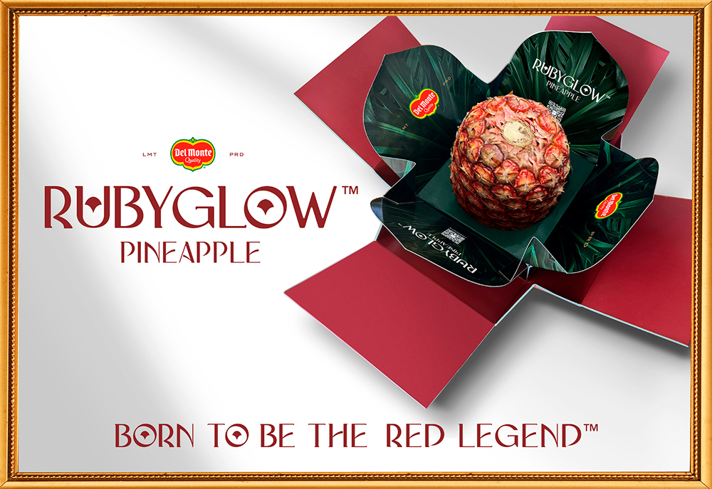 Esta variedad es un cruce entre una piña tradicional y una piña morada -que generalmente no es comestible-, haciendo que la Rubyglow® sea un fruto híbrido producido mediante técnicas tradicionales de cruzamiento. Las piñas cuentan con una patente registrada en Estados Unidos, se maduran naturalmente en nuestro país en la planta y se venderán exclusivamente en el exterior, sin corona y con un envase elegantemente diseñado.