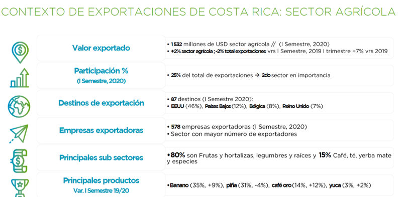 El estudio determinó que, a pesar de la crisis por la pandemia, el sector agroalimentario del mundo ha sido resiliente y sus exportaciones han experimentado un crecimiento de 5% en el primer semestre del 2020 en relación con el mismo periodo del 2019, lapso en el cual Costa Rica también creció en un 2%.