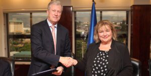 Firmaron el convenio el presidente ejecutivo del BCIE, Dr. Nick Rischbieth y la encargada de Negocios a.i. de la Embajada de la República Federal de Alemania, Karin Jahr de Guerrero.