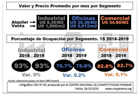 Estos presagios se dan luego de que en 2018 el comportamiento de este nicho de mercado registrara una menor dinámica. Sin embargo, de acuerdo con el último informe de la Dirección de Estadística y Estudios Especiales de la Cámara Panameña de la Construcción (CAPAC), se registró un incremento de 31% (US$251,4 millones) en construcciones comerciales al cierre de 2019 con respecto al mismo período del 2018. En el mismo período, el monto total de las inversiones en el sector de la construcción registró un incremento de 6%.