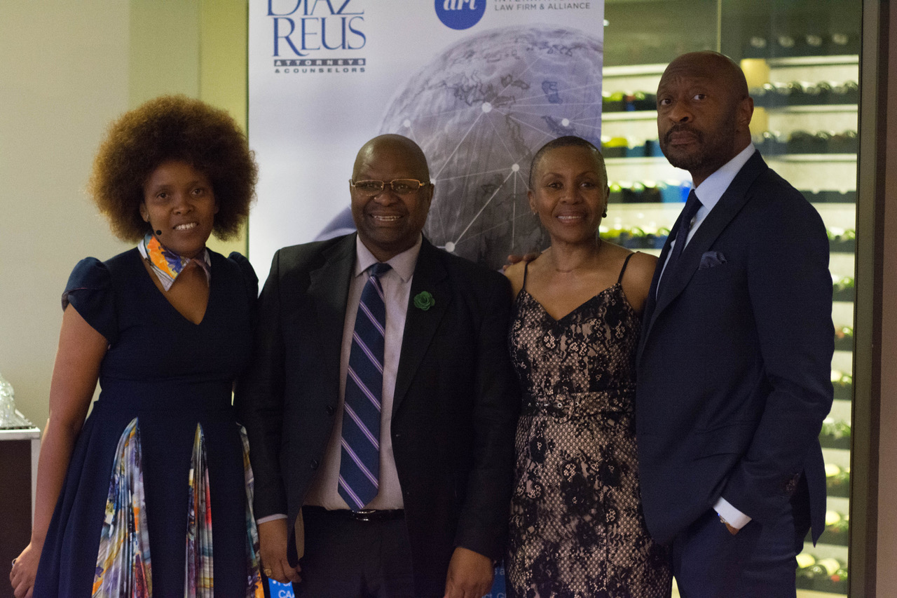 Yamkela Makupula, CEO de Diaz Reus Africa; Louis Zondo y Michael Diaz, Jr., socio director global de Diaz Reus, con unos invitados.