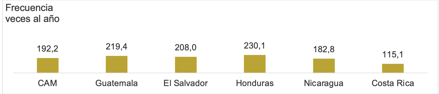 Según la muestra de Kantar que comprende 3.250 hogares en Guatemala, El Salvador, Honduras, Nicaragua y Costa Rica, teniendo una proyección de 6.875.451 hogares. El comprador centroamericano visita con gran frecuencia los establecimientos para hacer compras de productos de consumo masivo, cada dos días es la frecuencia de visita a los lugares cómo supermercados, tiendas/pulperías, minisúper, entre otros. Siendo los ticos los que espacian más las visitas, cada 3 días.