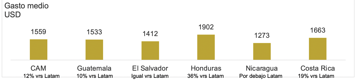 Por otro lado, encontramos que el gasto promedio por hogar en CAM está 12% por arriba del promedio de Latinoamérica.