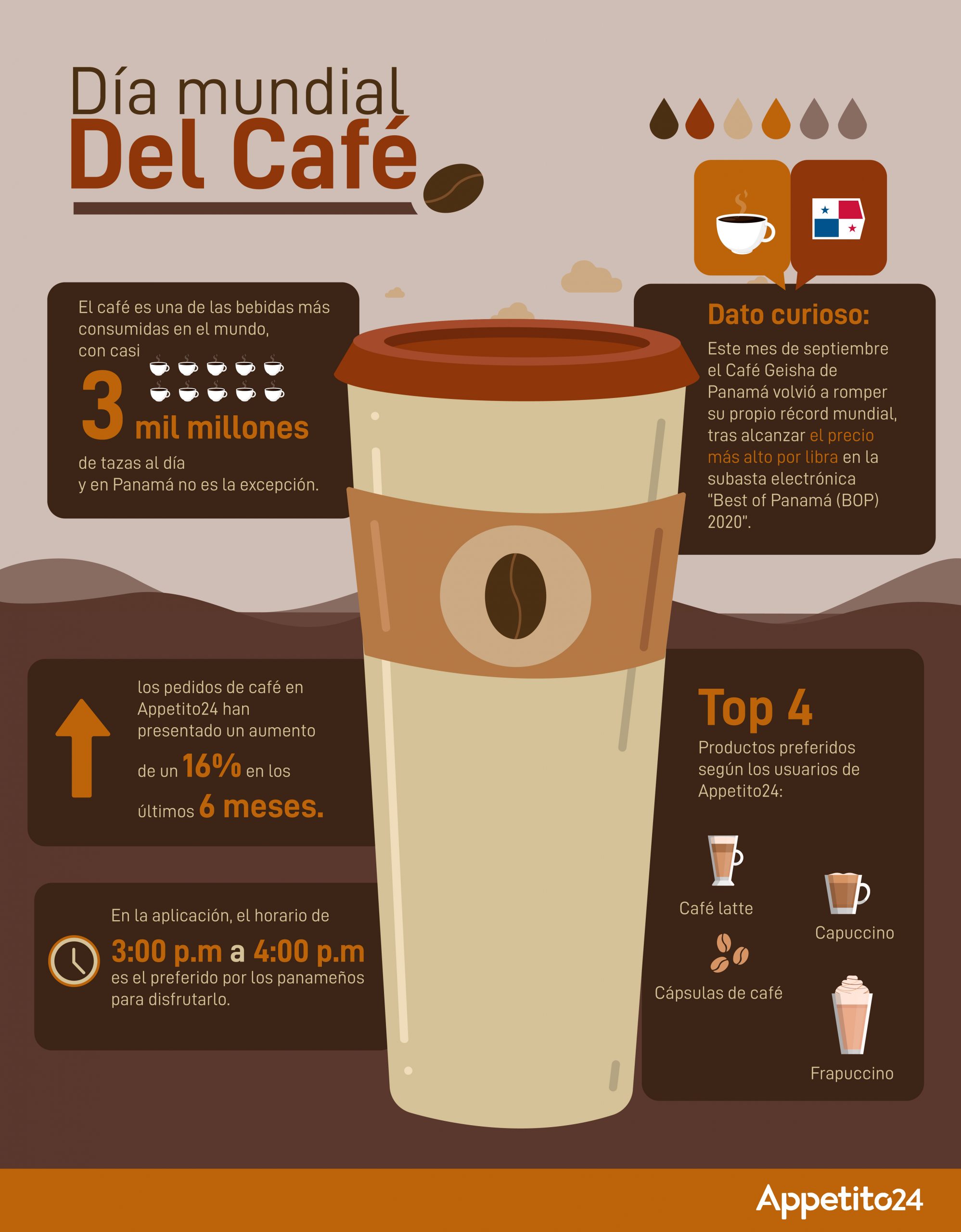 La compañía de delivery, destaca en su último estudio que los pedidos de café han crecido tanto en la oferta de restaurantes, como en términos de órdenes en los últimos meses. Cabe destacar que en los últimos 6 meses, el periodo de marzo a agosto de 2020, se ha mostrado un crecimiento del 16,4% en la sección de café de la plataforma de Appetito24, siendo el horario de 3 p.m. a 4 p.m. el preferido por los usuarios para disfrutarlo, un dato curioso que muestra una  diferencia de la frecuencia de pedidos de comida que son en la hora del almuerzo o en la cena. Particularmente los consumidores han seleccionado los domingos para cumplir sus antojos de café de sus locales favoritos.