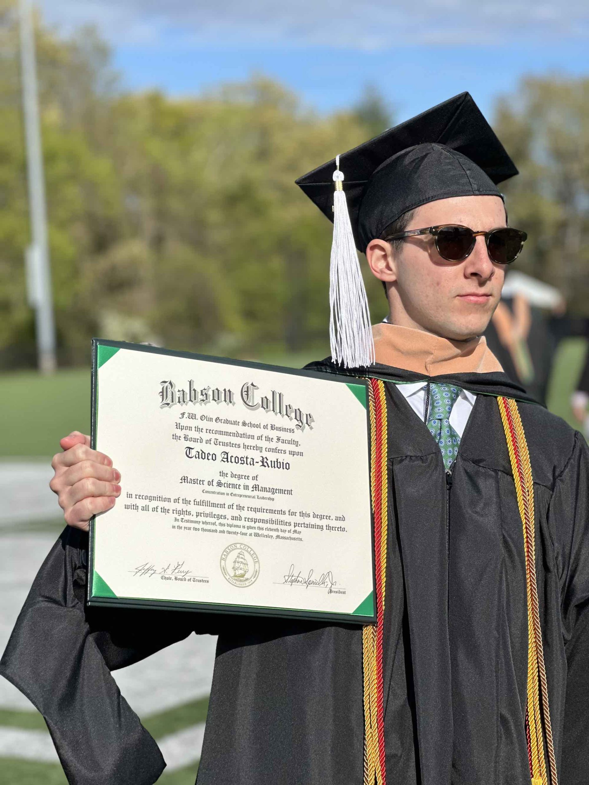 En 2023, Tadeo obtuvo su licenciatura en Administración de Empresas con concentración en Emprendimiento en la Universidad de Miami. Luego, realizó una Maestría en Ciencias de Emprendimiento y Liderazgo en Babson College, donde se graduó Magna Cum Laude en 2024.