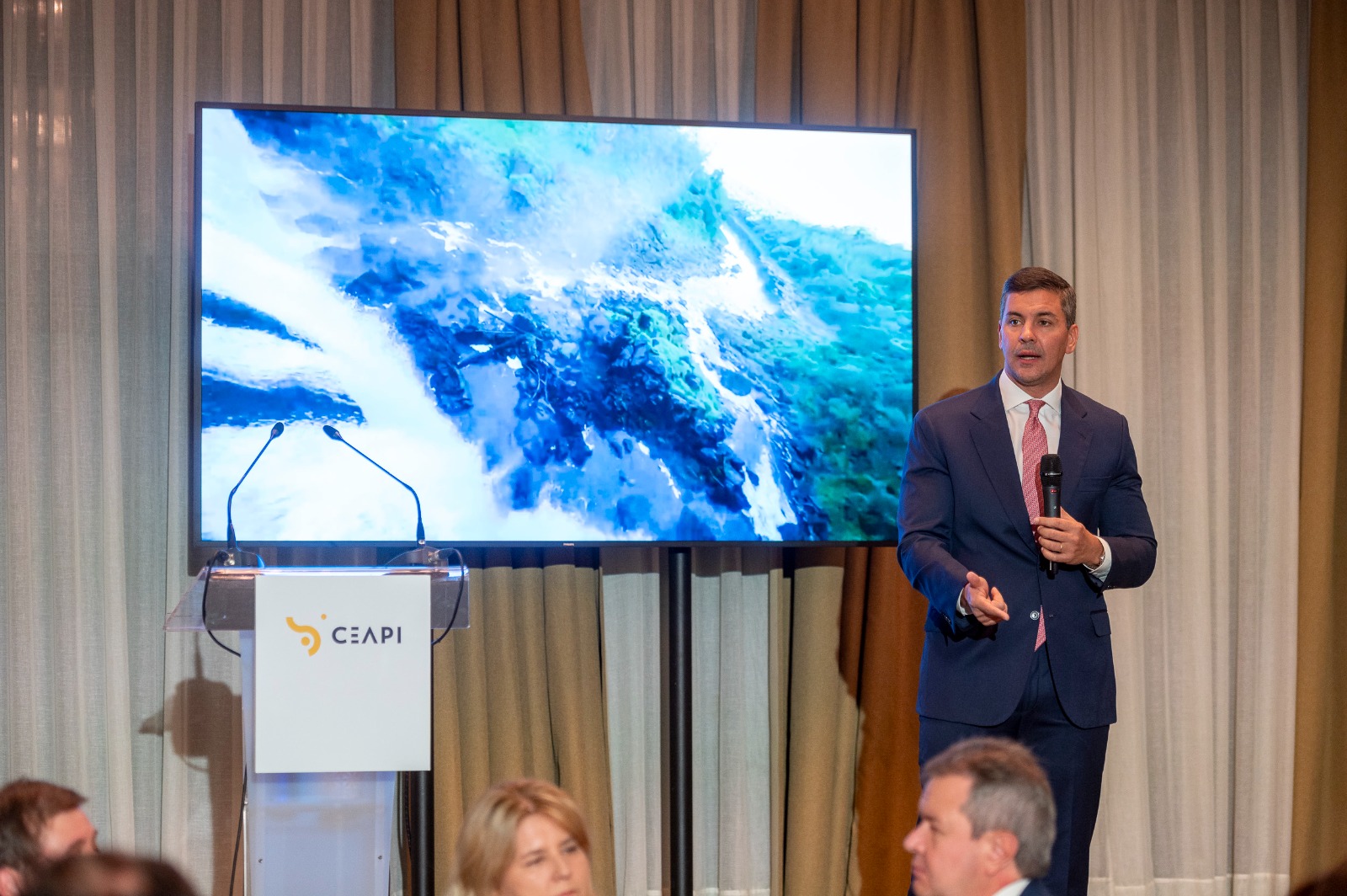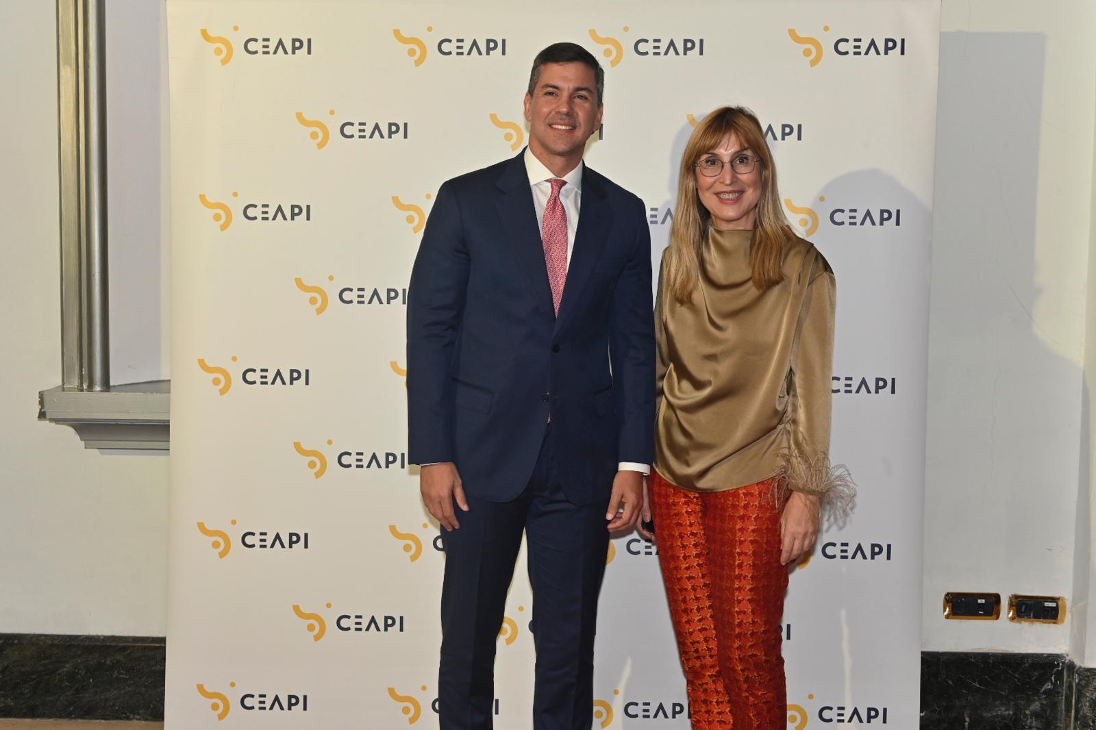 El Consejo Empresarial Alianza por Iberoamérica (CEAPI) ha celebrado este martes una cena empresarial presidida por el presidente de la República de Paraguay, Santiago Peña, y la presidenta de CEAPI, Núria Vilanova. El encuento, al que han acudido los socios e invitados de la asociación, se ha celebrado en Madrid, tras un almuerzo, también liderado por el mandatario paraguayo y Vilanova, en Barcelona.