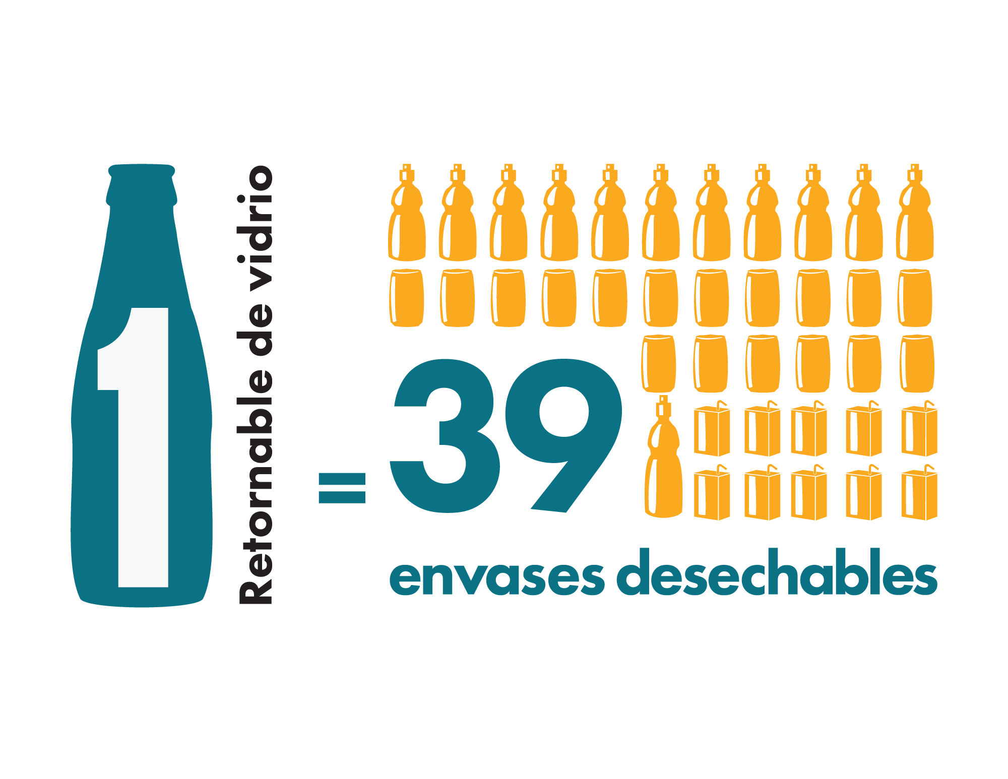 Preferir productos en botella de vidrio retornable evita en promedio que 39 envases desechables lleguen al ambiente.