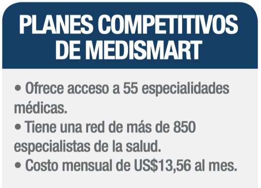 MediSmart ofrece a sus afiliados acceso a 55 especialidades médicas y a una red de más de 850 especialistas de la salud, con ahorros de hasta un 80% del costo, por US$13,56 al mes, y permite incorporar a familiares como cónyuge, hijos, papás o abuelos por US$6,78 cada uno, y hasta mascotas, por US$2,26.