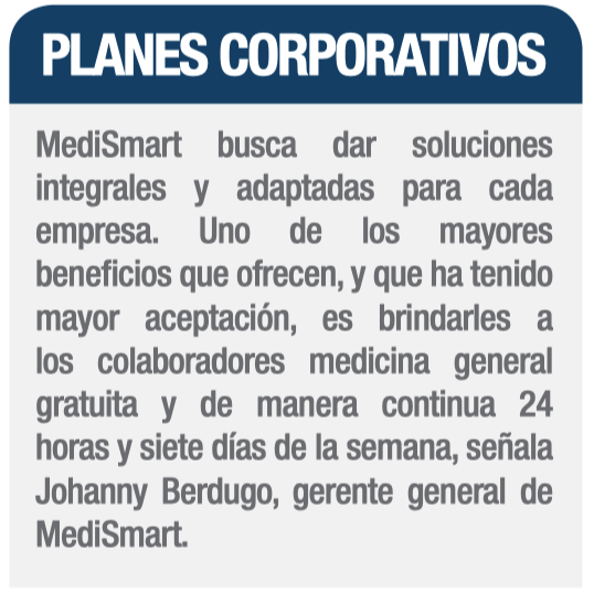 “El éxito alcanzado por MediSmart se debe a que entendimos una necesidad y logramos ofrecer una propuesta de valor adecuada para que la medicina privada de calidad sea accesible. Nosotros hacemos posible que las personas puedan pensar que ir al médico no es un desajuste en sus finanzas y, por el contrario, quieran invertir en su salud, incluso de manera preventiva. Nuestro objetivo es brindarle a la población cada día mayores y mejores soluciones de salud de alta calidad”, indica Johanny Berdugo, gerente general de MediSmart.
