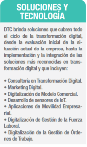 Digital Transformation Consulting DTC asesora a las empresas en su proceso de transformación digital. Para eso, utiliza una metodología mundialmente probada para analizar la situación actual de la empresa y definir el escenario futuro, donde las tecnologías digitales influirán en el modelo de negocios garantizando crecimiento, y permitiendo que la empresa se mantenga relevante en este nuevo mundo digital.