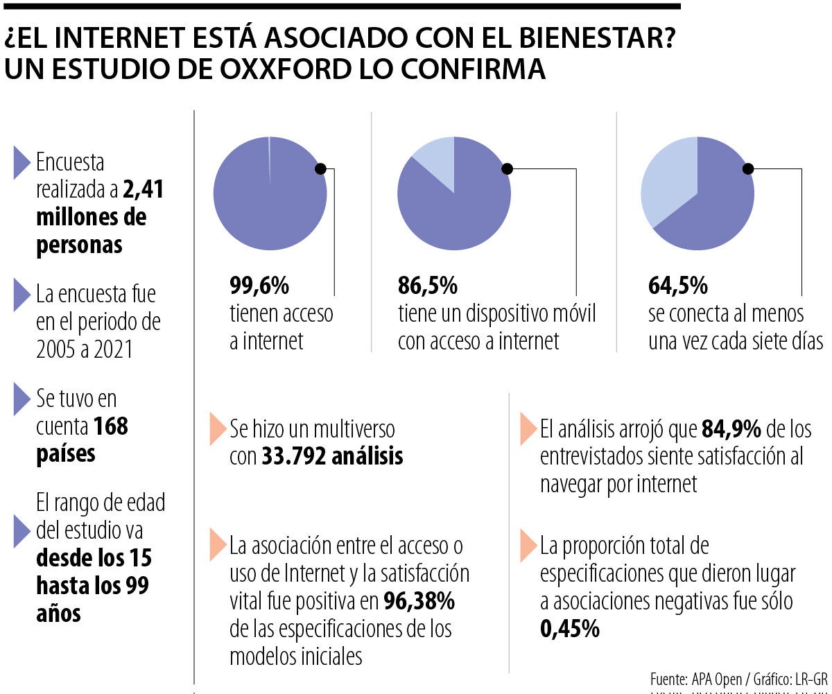 Una encuesta de la Universidad de Oxford arrojó que el internet puede generar un estado de satisfacción vital, física y psicológica.