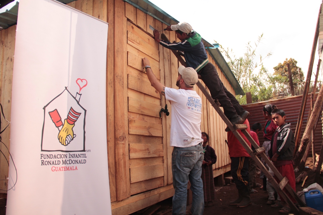 La Fundación Infantil Ronald McDonald, a través de Techo, construye del 27 de marzo al 1 de abril de 2015, 129 viviendas donadas con parte de los fondos recaudados en el pasado McDía Feliz por los Niños, en Guatemala.
