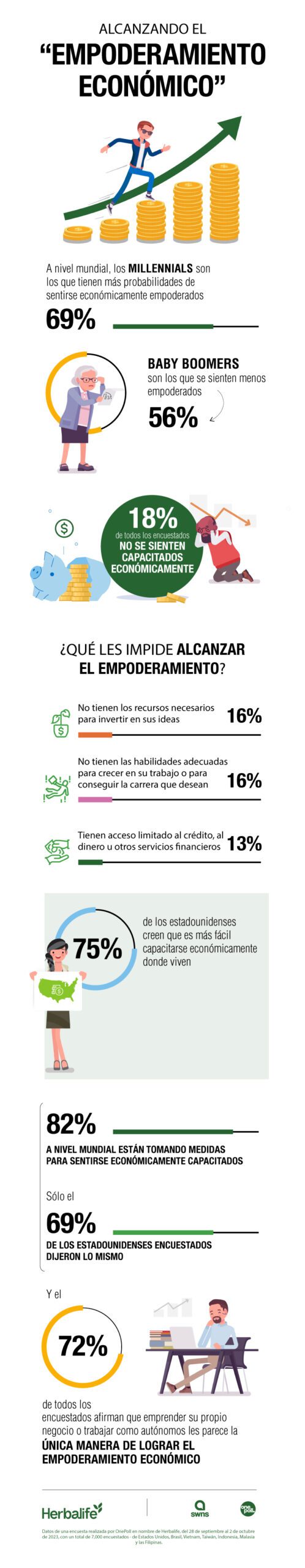 Herbalife, compañía líder en salud y bienestar, presentó los resultados de una nueva encuesta global realizada en 2023, a través de OnePoll. Los hallazgos revelan que, a nivel mundial, la Generación Z y los millennials son los más propensos a sentirse económicamente empoderados, con un 66% y un 70% respectivamente.