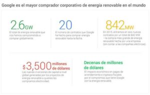 Aún cuando los centros de datos de Google, son 50% más eficientes energéticamente que el promedio de la industria, la compañía ha señalado en un blogpost que: “aún necesitamos mucha energía para alimentar los productos y servicios de los que nuestros usuarios dependen. Comenzamos a comprar energía renovable para reducir nuestra huella de carbono y hacer frente al cambio climático, aunque también hace sentido para los negocios”.