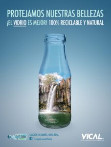 En esta campaña VICAL está exponiendo bellezas naturales del país que deben preservarse y proteger de la contaminación. En ese contexto se busca recordar a los consumidores las bondades que ofrece el vidrio para preservar el medio ambiente, y entre estas, se destaca que es 100% reciclable. “Vical siendo responsable empresarial y ambientalmente considera que su producto el vidrio por sus características físicas y químicas, siendo 100% proveniente de elementos naturales e inocuo con el medio ambiente, es el material de empaque más sostenible y responsable aportando grandes beneficios en pro del cuidado ambiental”, mencionó Eduardo Ordoñez, vocero de VICAL durante la presentación de la campaña.