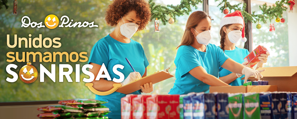 Este año, sin duda, la solidaridad y el compartir con los demás, debe marcar una diferencia en las celebraciones navideñas.  Por esta razón, Dos Pinos llega estos meses de noviembre y diciembre con la campaña “Unidos sumamos sonrisas”, para transformar las palabras en acciones  y llevar alimentos a muchas familias en riesgo social.