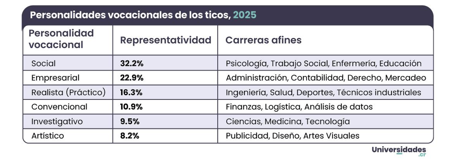Más allá de las aspiraciones declaradas, el análisis de Universidades.cr también revela cómo son los estudiantes costarricenses desde su perfil vocacional.