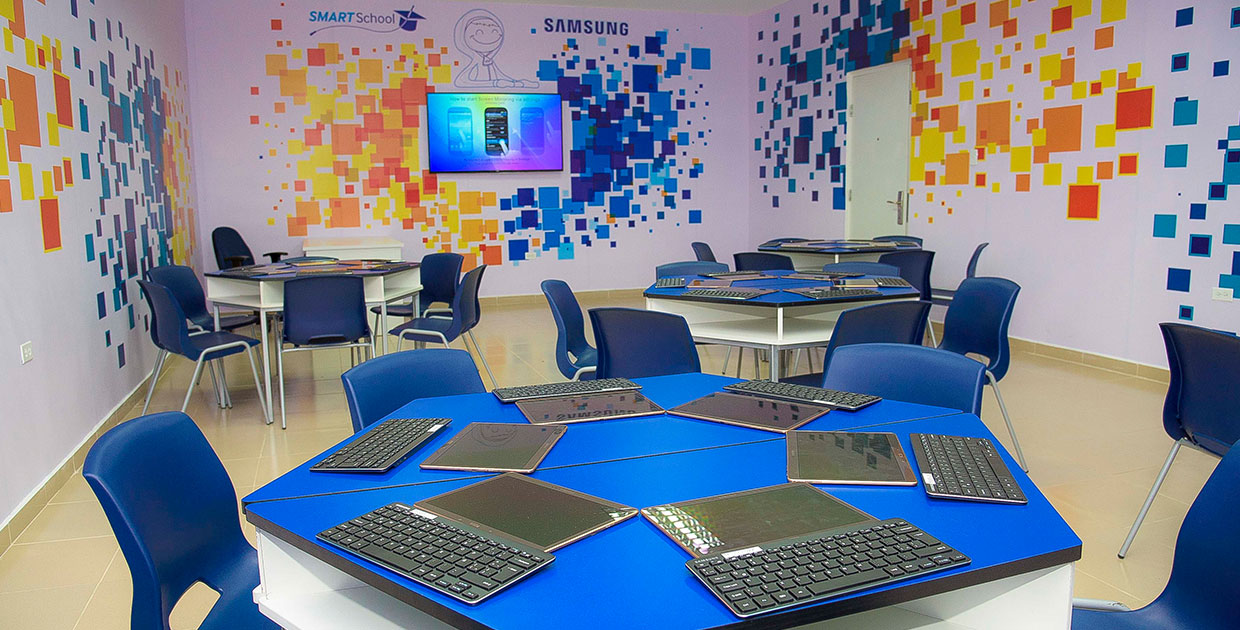 Así, en la última versión de Soluciones Para el Futuro en República Dominicana, la escuela ganadora recibió un salón creado para continuar fomentando el proceso creativo a través de un diseño para que las ideas fluyan, basado en los espacios del C-Lab, donde se emplean técnicas como Design Thinking. Estos “Espacios de Innovación” o Innovation Space, incentivan a los estudiantes a desarrollar proyectos especiales de innovación y ciencias utilizando las herramientas tecnológicas de Samsung. Allí cuentan con tablets Galaxy Tab E, gafas de realidad virtual Samsung Gear VR, celulares Galaxy S8, cámaras Samsung Gear 360, una Smart TV LED de 55 pulgadas Ultra HD 4K y un 3D Printer.