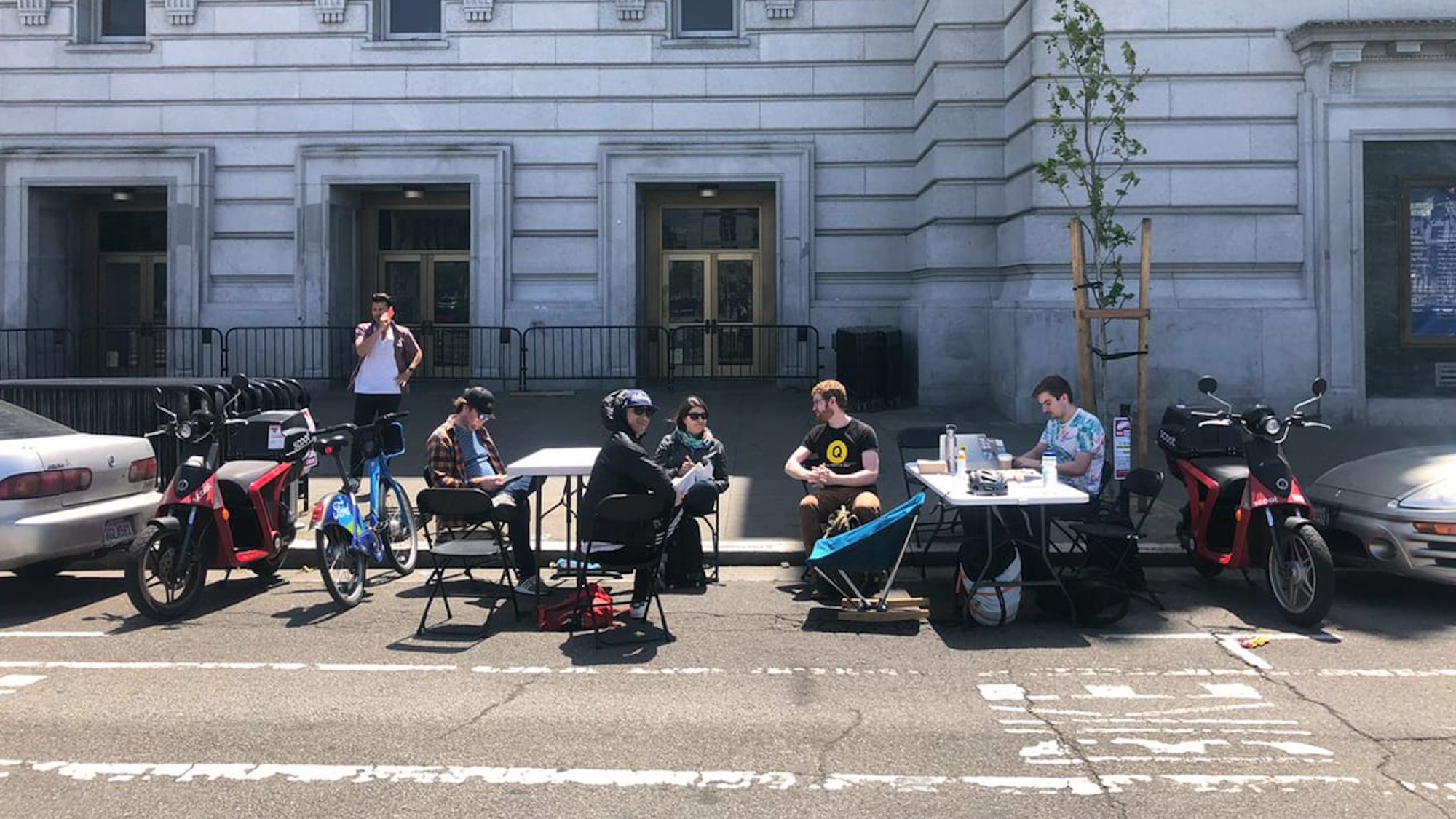 El lunes 29 de abril, los trabajadores de diversas industrias de San Francisco se reunieron cerca del Centro Cívico para trabajar por el día. Esto no es inusual: de cualquier ciudad de los EE. UU., San Francisco tiene la mayor proporción de espacios de trabajo (coworking) en relación con su población, y es bastante común que los trabajadores independientes y los empleados remotos se encuentren trabajando cerca uno del otro, pero no exactamente juntos. Pero la reunión del lunes fue diferente.
