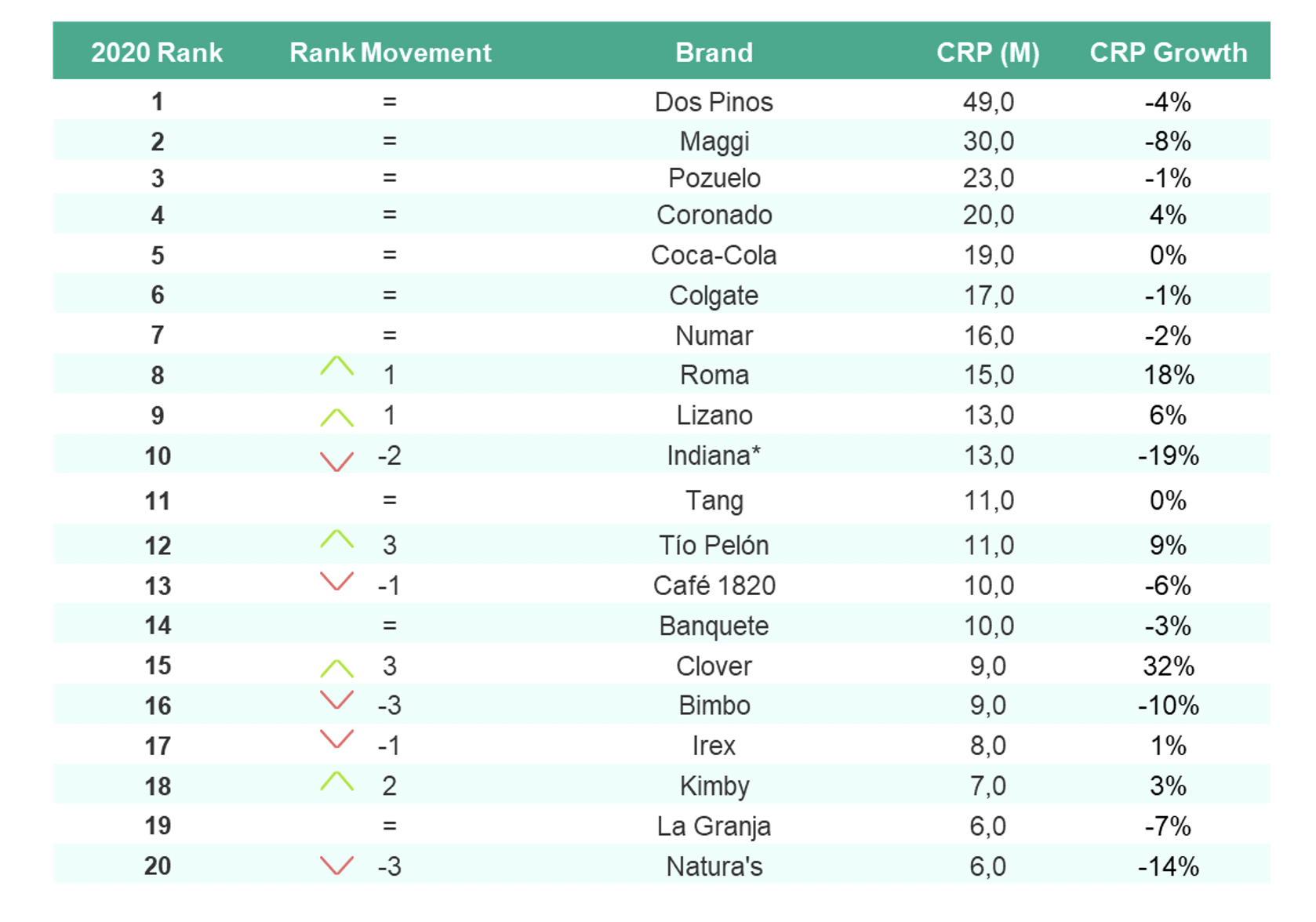 A nivel centroamericano 35 de las marcas en el Top 50 han estado presentes en el ranking durante los últimos 5 años. Y este año, tres marcas se sumaron al listado, la marca de Industrias La Popular, Ultra Klin, la marca Clover y Maxisol, dos marcas del sector de cuidado para el hogar. Cabe mencionar, que, aunque se vivió un contexto atípico, hubo casos de éxito que lograron escalar más de 10 posiciones en el último año, como fue la marca de derivados del maíz, Maseca (+27), la ya mencionada Ultra Klin (+18), marca Incaparina de Guatemala (+16), Nube Blanca en papel higiénico (+15) y la marca Clover (+15); en donde Guatemala fue el impulsor de esa escalada. En Costa Rica solo la marca Pinito de Dos Pinos logró escalar más de 10 lugares en 2020.