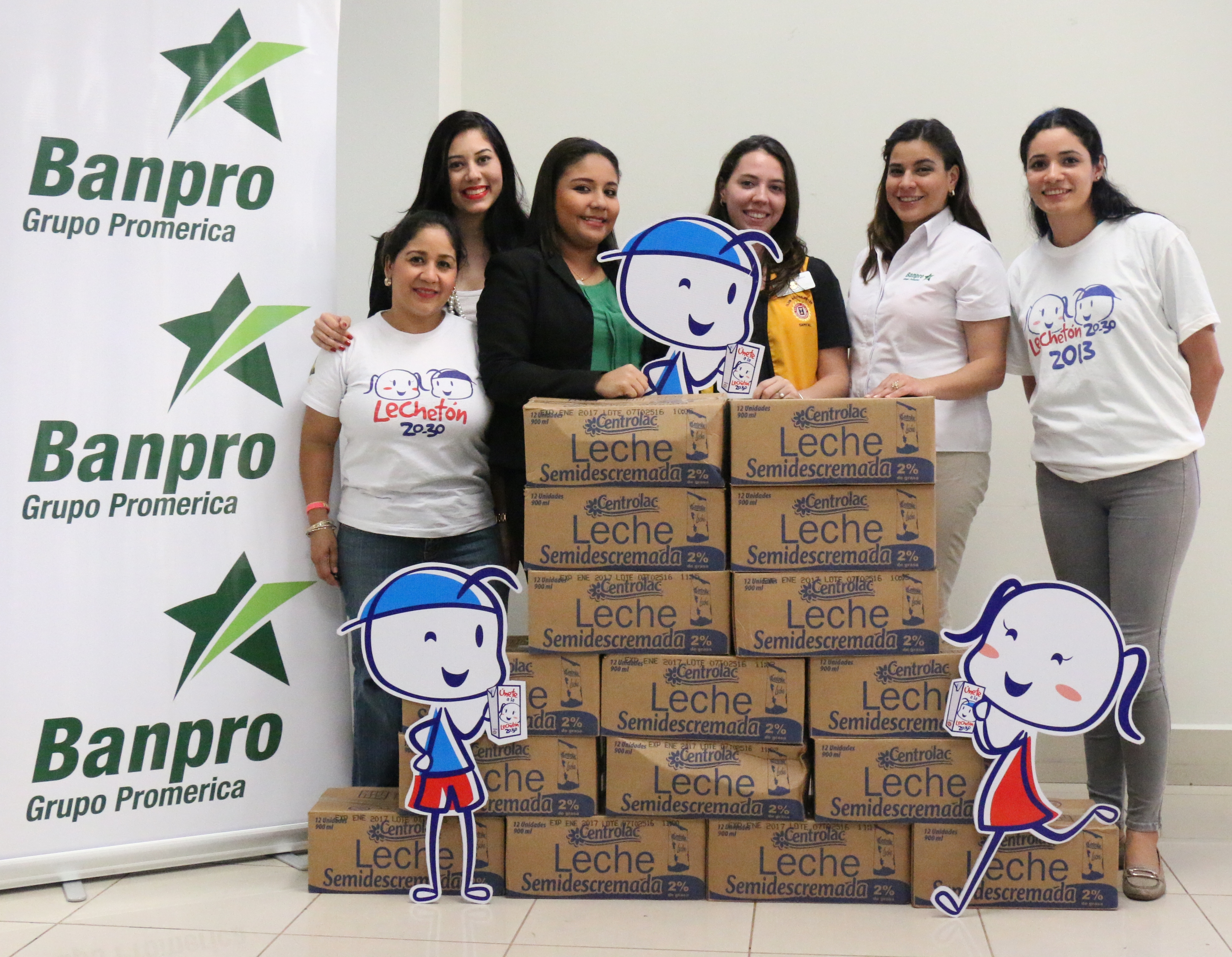 Una vez más, Banpro Grupo Promerica se suma a la actividad “Lechetón 20-30”, que organiza por cuarto año consecutivo la Asociación Activa 20-30 Nicaragua en alianza con Tetra Pak, para recolectar leche en envases de Tetra Pak, con el propósito de donarla a instituciones benéficas que atienden a niños y niñas que padecen alguna deficiencia alimentaria y de esta forma ayudar a complementar los nutrientes fundamentales que necesita su dieta diaria.