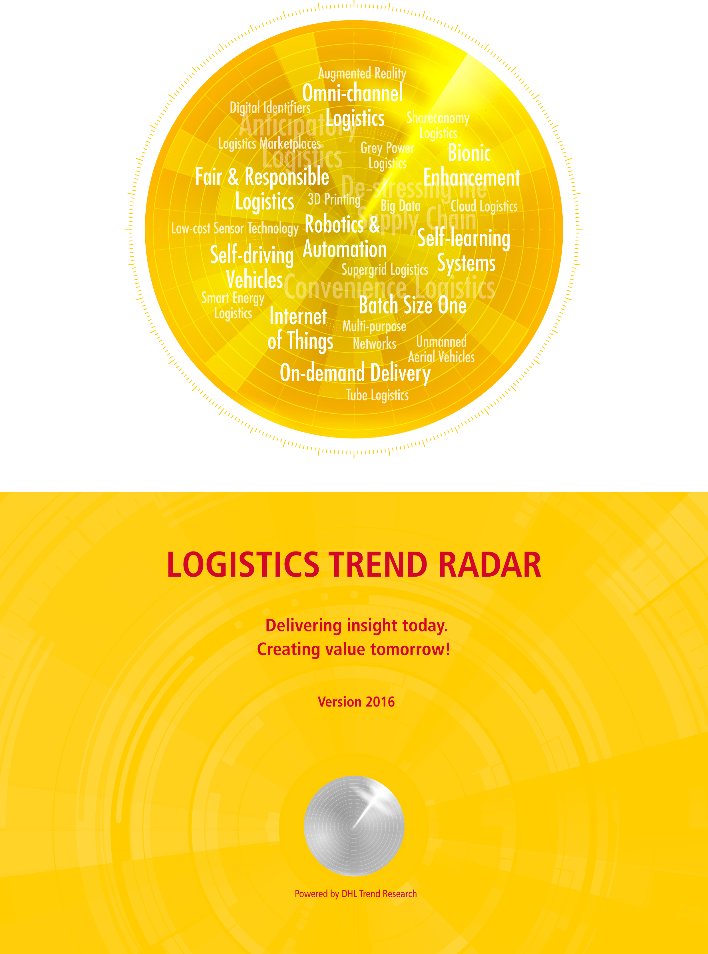 DHL, el proveedor de servicios logísticos líder en el mundo, revela 26 tendencias clave que podrían afectar a la industria de la logística durante los próximos cinco a diez años. El nuevo informe Logistics Trend Radar 2016, el tercero de esta serie innovadora, presenta nuevas tendencias de marcas, hace seguimiento de la evolución de las tendencias detectadas en ediciones anteriores y de las que han desaparecido o se han masificado desde que se inició la serie el año 2013.