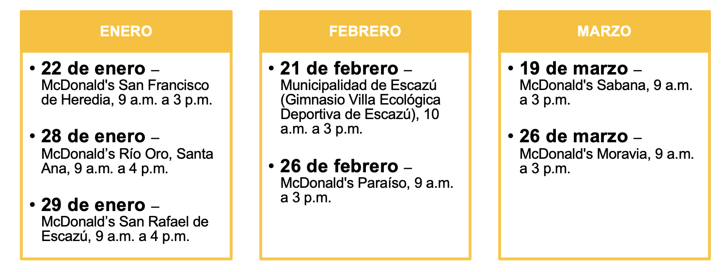 Las próximas ferias de empleo de la compañía que tiene más de 75 restaurantes en el país, se llevarán a cabo tanto en los restaurantes McDonald’s como en colaboración con municipalidades, en las siguientes fechas y lugares: