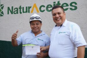 Hector Geovanni Gutierrez Coqui, colaborador de NaturAceites y Jasson Ramos, encargado de Relaciones Comunitarias y Desarrollo Organizacional de NaturAceites en Escuintla.