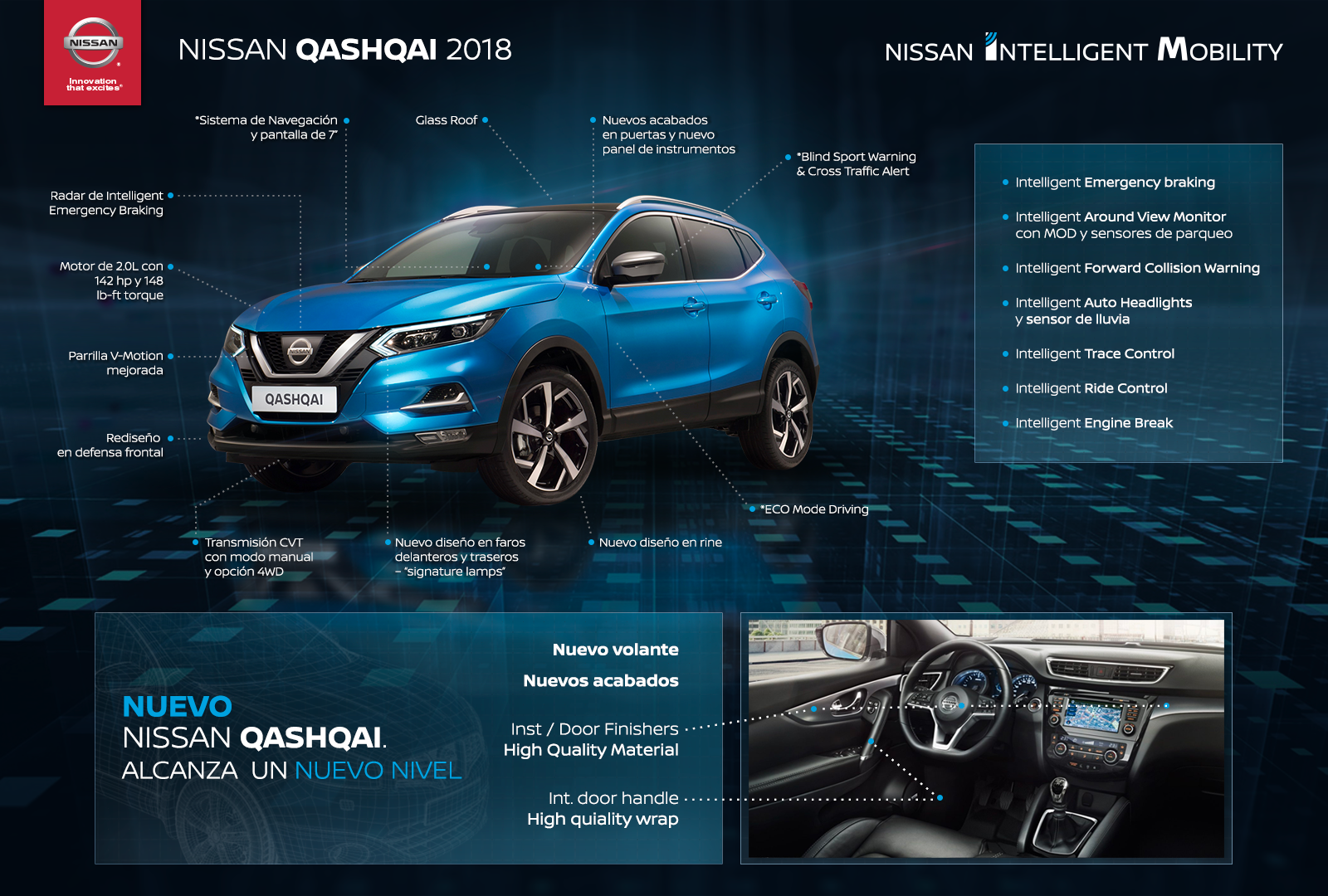 A 10 años de su lanzamiento mundial Nissan Qashqai, el SUV urbano, se refresca con mejoras significativas que fortalecen su carácter premium y urbano. Las mejoras se centran en cuatro áreas: un nuevo diseño exterior contemporáneo, mayores niveles de calidad interior, mejor desempeño y la incorporación de nuevas tecnologías Nissan Intelligent Mobility. En su versión 2018, Nissan Qashqai, el crossover urbano definitivo.