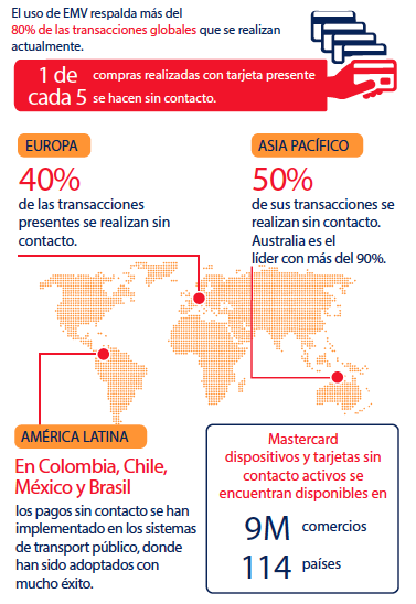 Mastercard introdujo las tarjetas sin contacto en 2003 para ofrecerles a los consumidores una forma segura y sencilla de pago que les ayudara a avanzar más rápido en las filas de las cajas de pago. Actualmente existen más de 370 millones de tarjetas sin contacto aceptadas en más de 9 millones de ubicaciones en 114 países.