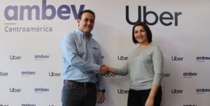 Roberto Batres, director de Asuntos Corporativos de Ambev Centroamérica y Carolina Coto, gerente de Comunicación de Uber para Centroamérica.