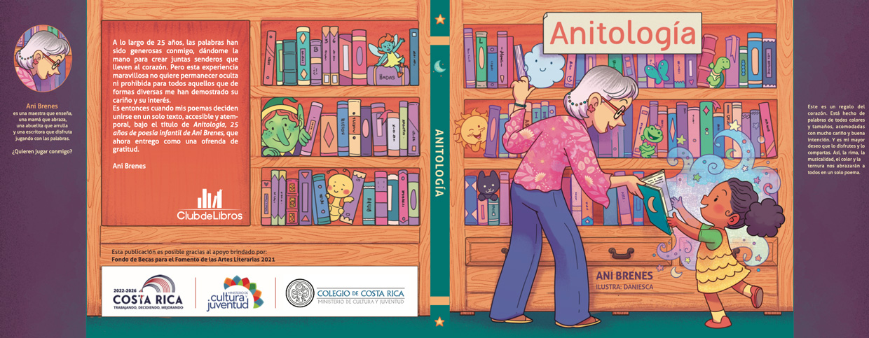 Con una publicación de ochenta páginas de poesía infantil cargada de historias, juegos de palabras, colores iridiscentes, matices y una fantástica representación gráfica, la escritora Ani Brenes presenta un compendio de su trabajo lírico de 25 años de trayectoria. “Anitología” recibe por nombre su más reciente publicación, la cual, deja entrever a través de sus palabras y metáforas, un universo lleno de ternura que ha sido delicadamente ilustrado a manos de la artista Daniela Espinoza.