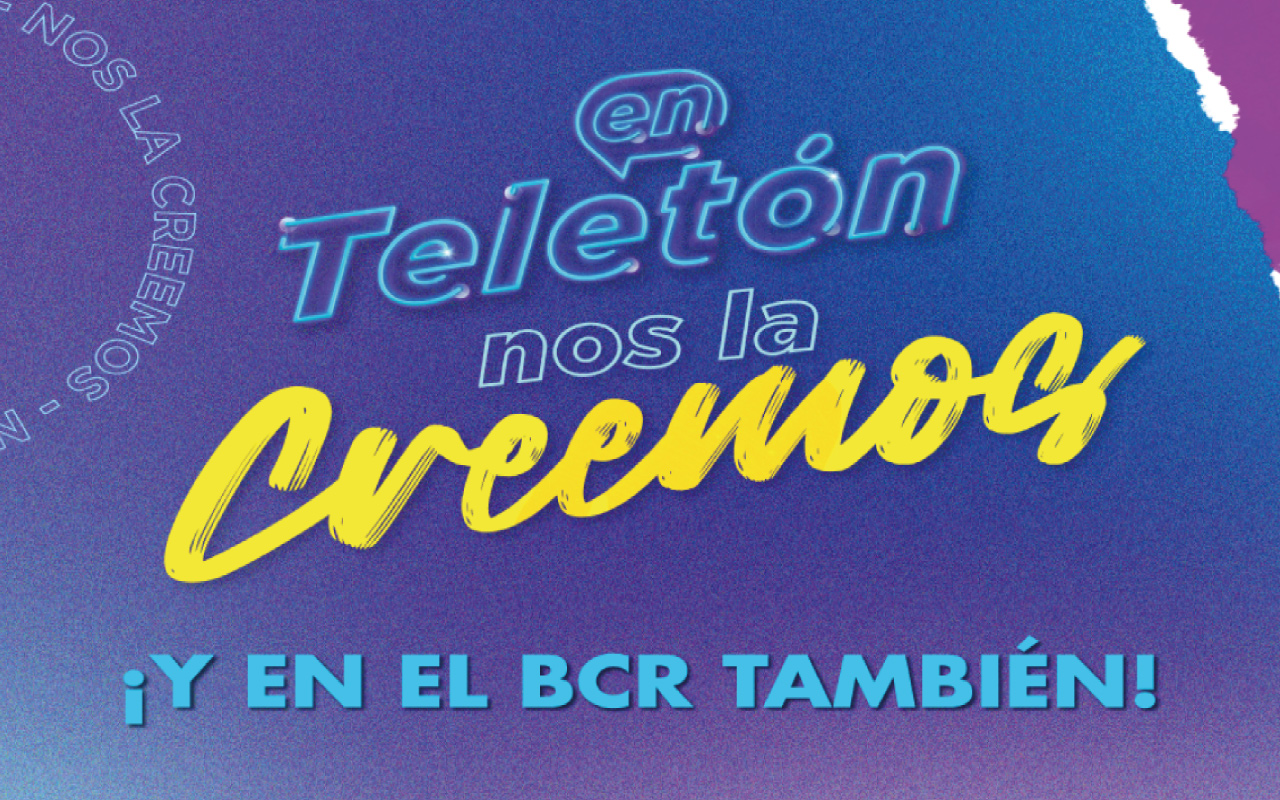 Teletón es sinónimo de colaboración y vida. Por eso el BCR se una para hacer realidad la compra de una bomba extracorpórea necesaria para realizar operaciones por malformaciones congénitas, en el Hospital Nacional de Niños. Cualquier donación aporta a los esfuerzos para alcanzar los objetivos planteados este año, que se dirigen a beneficiar a la niñez.